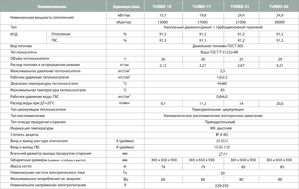 Технические характеристики дизельного котла Kiturami Turbo 21R