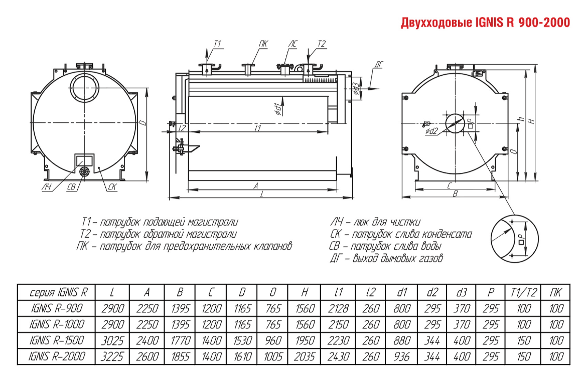 Технические характеристики водогрейного двухходового котла ARCUS IGNIS R-900