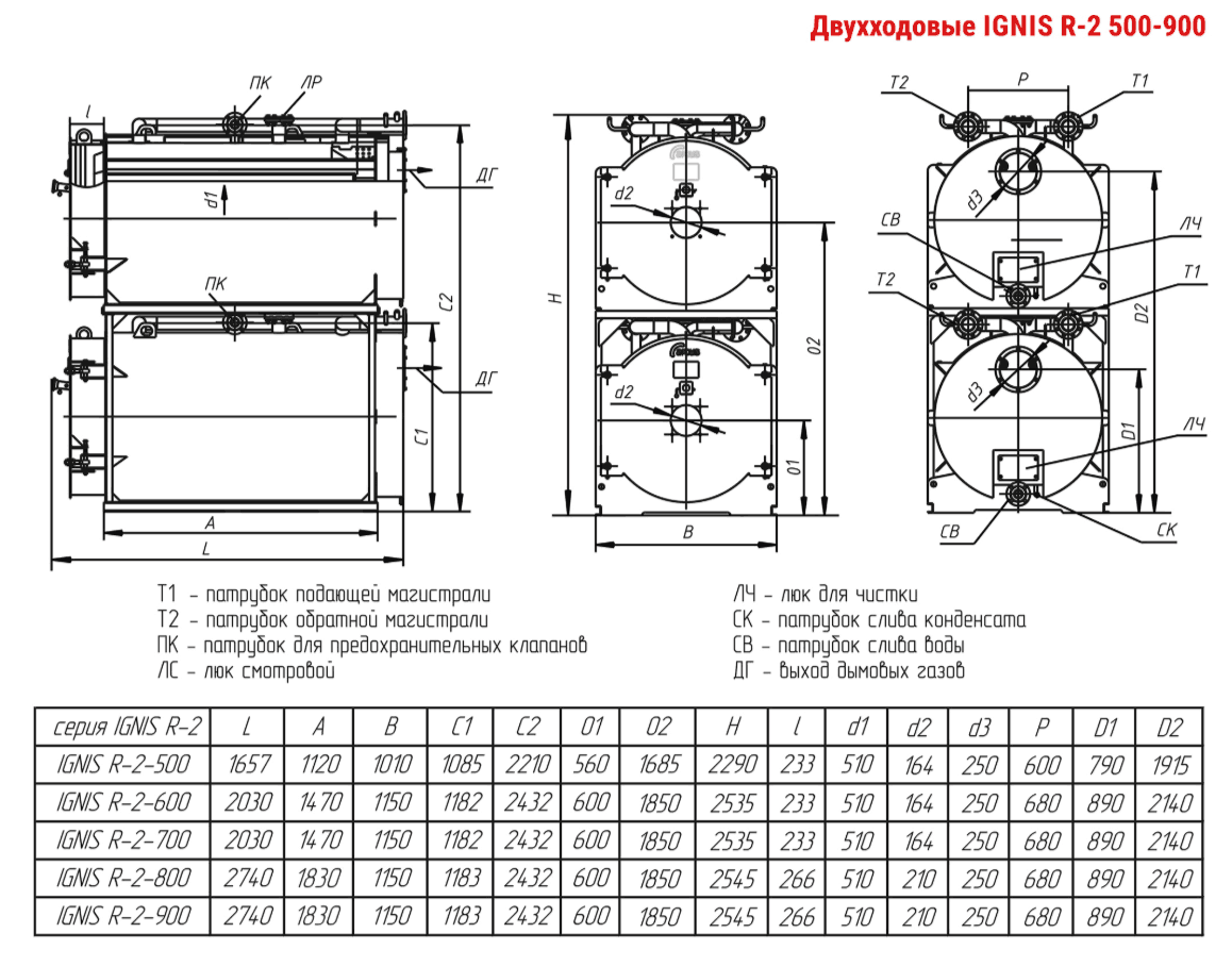 Технические характеристики модульного водогрейного трёхходового котла ARCUS IGNIS R-2-500