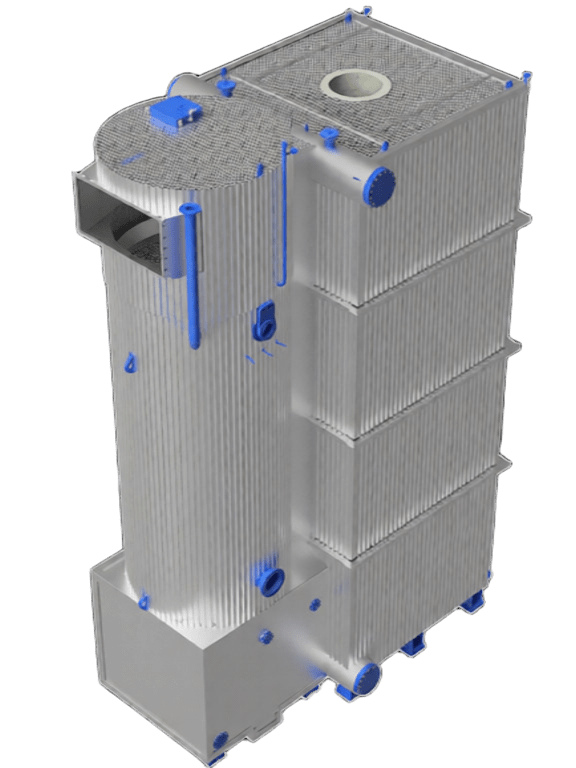 Отдельные элементы котла и комплектующие оптимально подобраны по габаритам, техническим характеристикам и собраны в модули, для установки на месте эксплуатации.