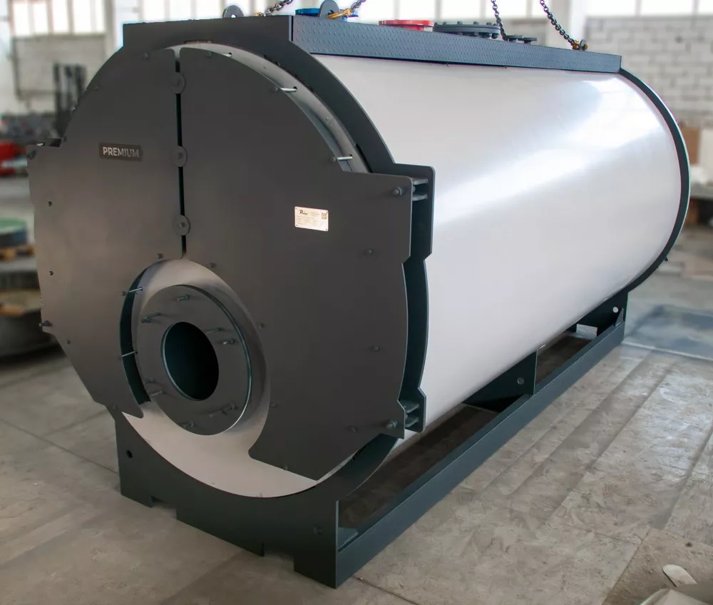 Стальной газотрубный трехходовой котел мощностью 8 МВт. В котле применена инновационная технология теплоизоляционного одеяла без использования бетона. Уже в базовой комплектации оборудован верхней площадкой для обслуживания.