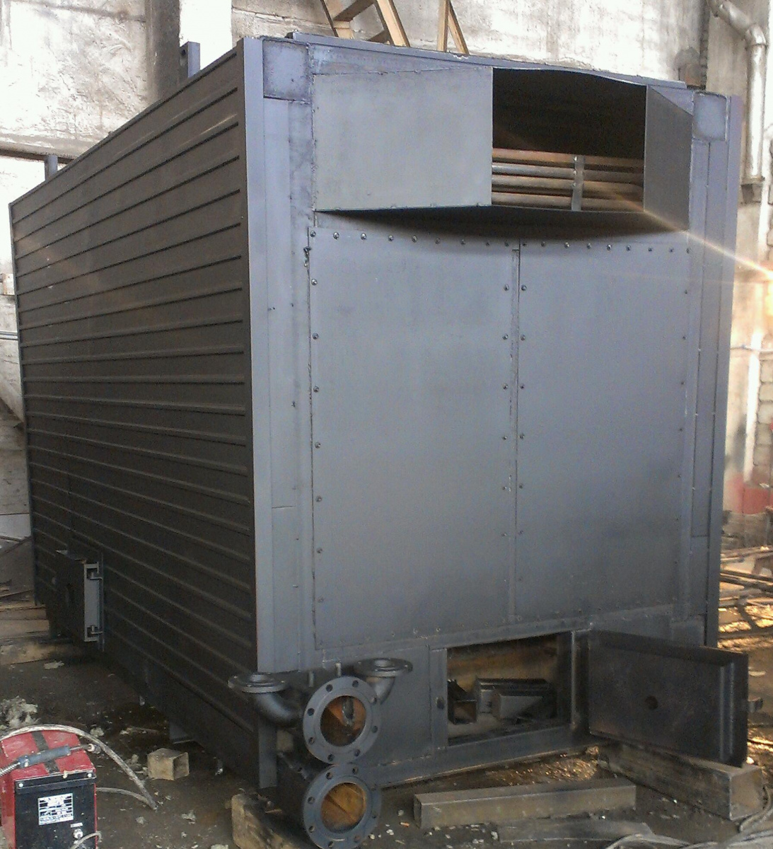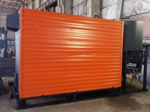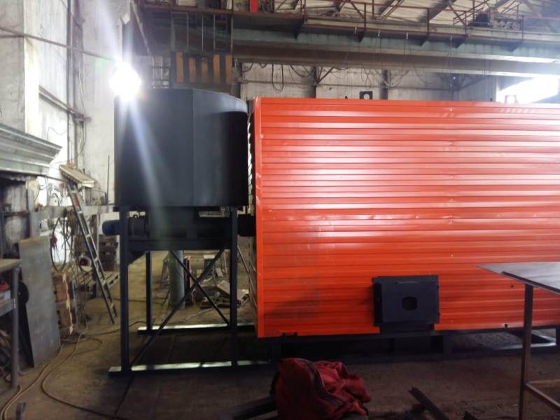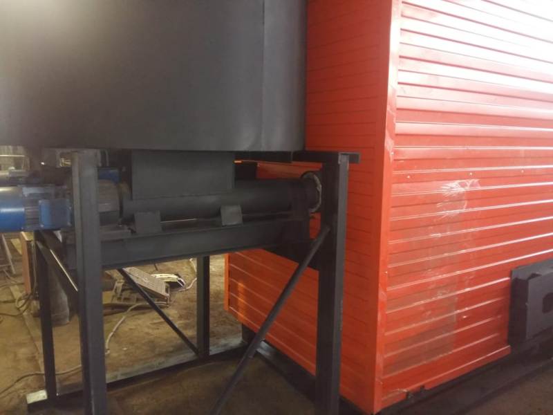 С фронта блока котла устанавливается топливный бункер и шнек подачи топлива. Из топливного бункера с помощью шнека топливо подаётся в котёл где сжигается в слое на ступенчатых колосниках.