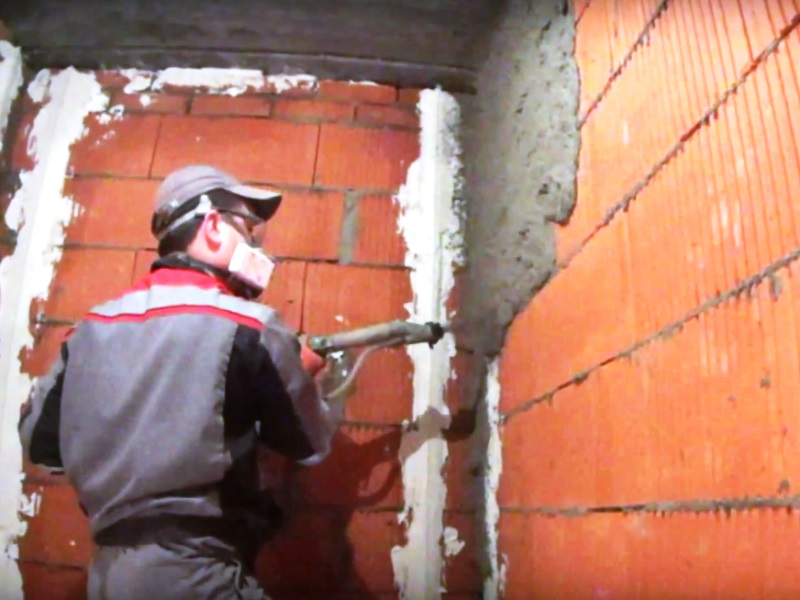 Штукатурка стен, как и остальные отделочные работы проводятся механизированным способом.
